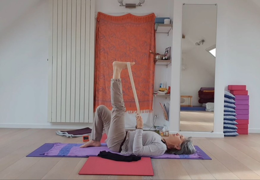 Nos dos souffrent autant par notre mauvaise position que par le manque de longueur à l'arrière de nos jambes. Mais elles nous résistent dans les postures de pince (debout ou allongée). Je vous propose un exercice doux et efficace pour allonger l'arrière de nos jambes. Il faut vous équiper d'une sangle, longue ceinture ou foulard.Belle pratique.