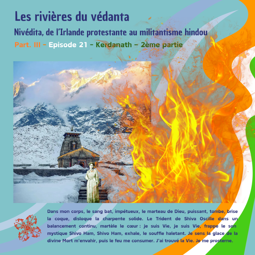 Dans mon corps, le sang bat, impétueux, le marteau de Dieu, puissant, tombe, brise la coque, disloque la charpente solide. Le trident de Shiva Oscille dans un balancement continu, martèle le cœur : je suis Vie, je suis Vie, frappe le son mystique Shivo Ham, Shivo Ham, exhale, le souffle haletant. Je sens la glace de la divine Mort m'envahir, puis le feu me consumer. J'ai trouvé la Vie. Je me prosterne.